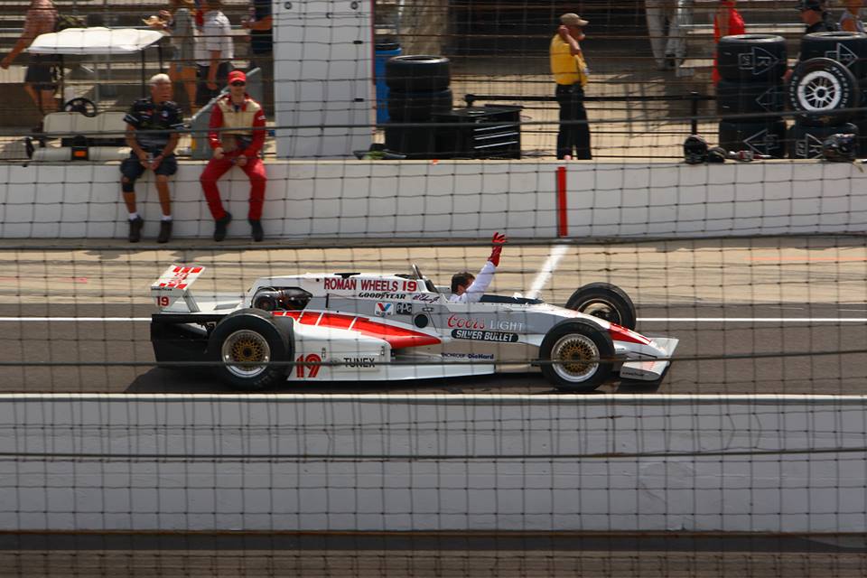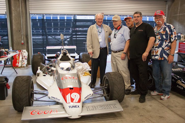 Danny Gurney ( son of Dan Gurney ) drives our 1983 Eagle Saturday and Sunday pre-race along side his 3 brothers Jimmy, Alex, and Justin.