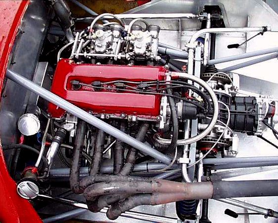 Nissan SR20 2L 16 valve alloy block DOHC, fitted with Kelford cams, fuel injection, belt driven dry sump system, aluminum flywheel, AP racing twin plate clutch, Aeroquip oil and fuel lines, stainless steel muffler etc.
