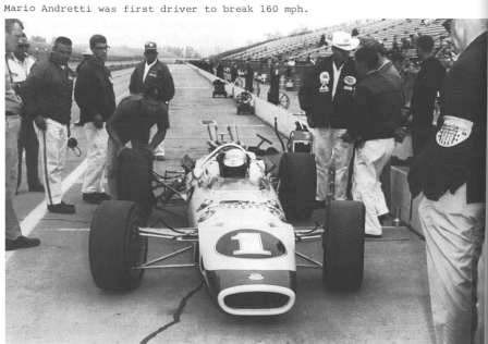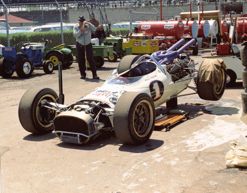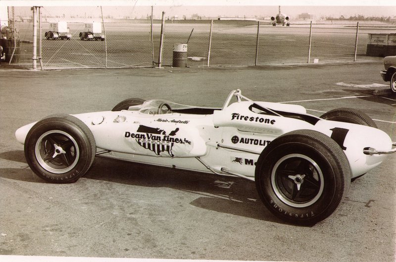 1966 - Car #1, Dean Van Lines Special Indianapolis Speedway, May 30: Mario Andretti, DNQ Note: USAC records show that Dean Van Lines had two entries in 1966, #1 and #64. The second number was originally carried by the Brabham/Hawk which Mario eventually ran in the race. The Lotus wears No. 1 in numerous photos showing it at the track that year. (The Clymer 1966 Indy 500 Yearbook shows this car in several photos, on pages 69 and 147 - the latter incorrectly and confusingly captioned as the Brabham/Hawk!) However, Mario also carried No. 1 on his Brabham/Hawk for qualifying, and the race. Apparently, the two were switched when Mario elected to use the latter in the race; such switches were allowed by USAC, although it did not allow two separate cars to be entered under a single entry number.
