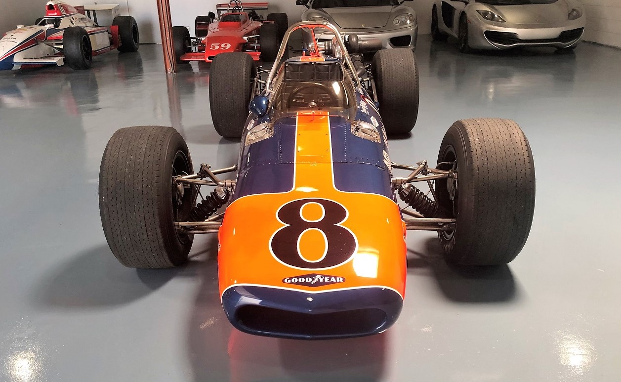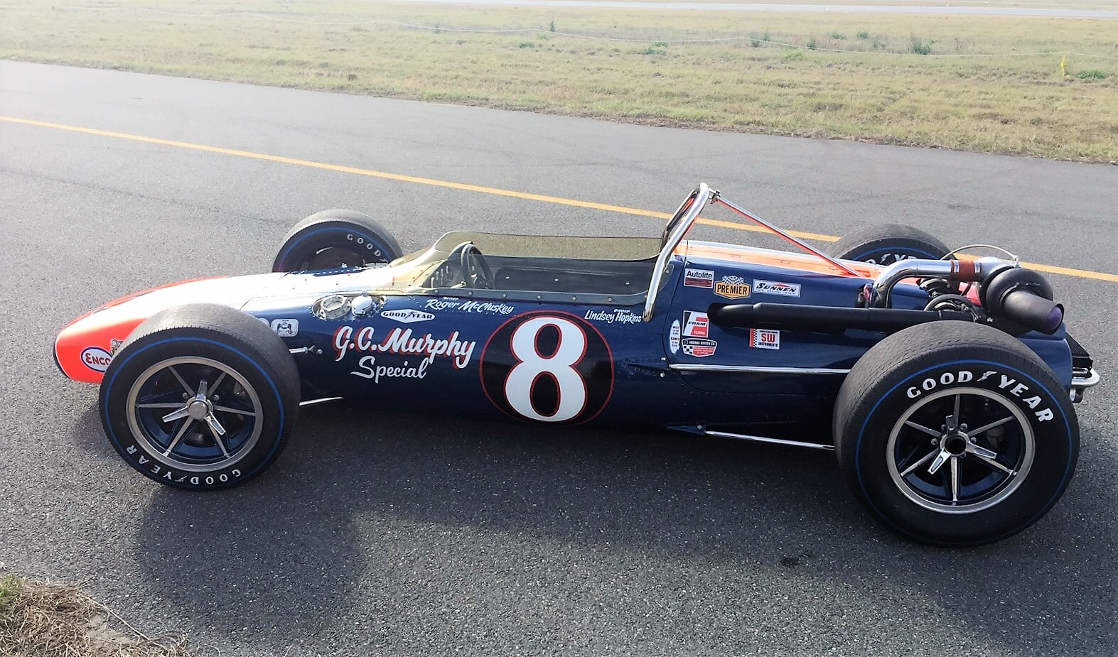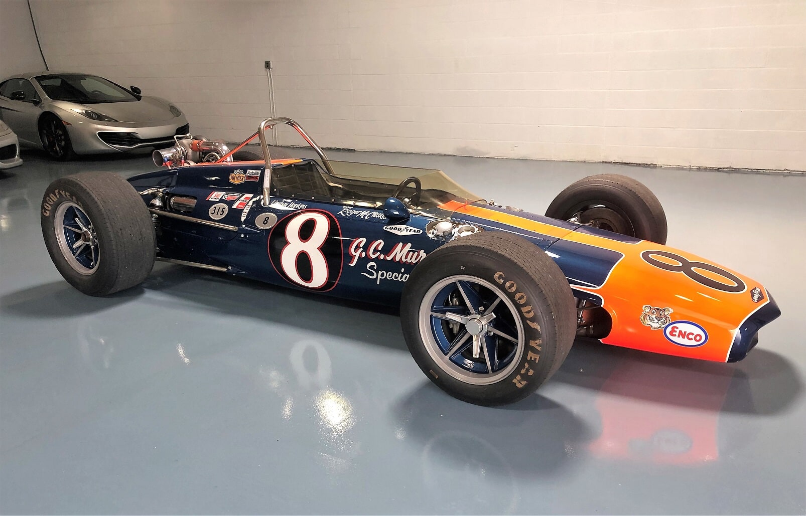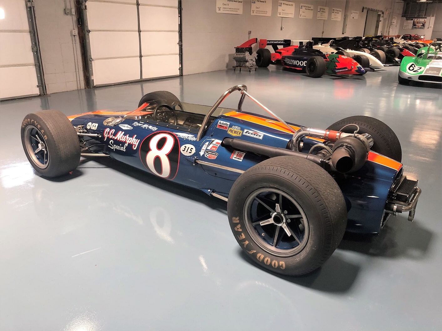 Dan Gurney's 1st 1968 Eagle (Chassis 40-1) produced for the legendary team owner, Lindsey Hopkins,of the Coca Cola Fortune. At the 1968 Indianapolis 500, McCluskey originally tried to qualify this car with a normally aspirated Ford 4 Cam but was unable to get the car up to competitive speeds. The decision was made to install a more powerful turbo Offenhauser engine. As a result, Roger McCluskey qualified this car 7th for the 1968 Indy 500 and ran as high as 2nd place before being sidelined with a cooler leak. McCluskey campaigned this car for the 1968 season with many top ten finishes and several podiums. If desired, a normally aspirated Ford 4 Cam can be reinstalled as the chassis retains it's original engine mounts.