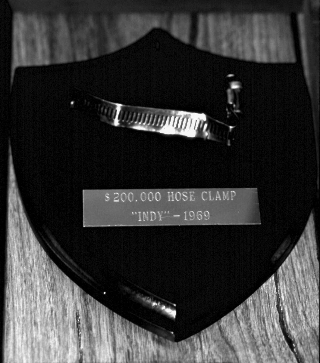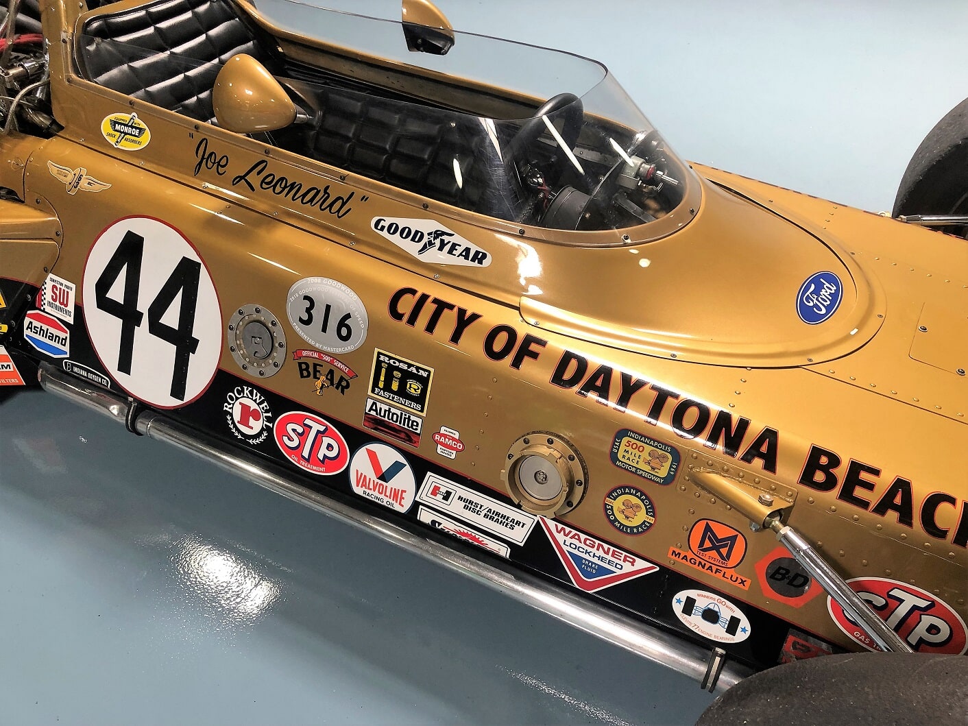 1969 Eagle Santa Ana Indy Car, one of four built. Serial # 703. City of Daytona Beach Special. Legendary race car and engine builder Smokey Yunick purchased the car from manufacturer Dan Gurney. Joe Leonard qualified the car for the 1969 Indianapolis 500 and ran as high as second place before a hose clamp thrown up from another car punctured the radiator. The car started 11th. Finished 6th. After the race Smokey collected the hose clamp and had it framed as the "$200,000 Hose Clamp" for the amount he would have won as the race winner. (Picture Below)