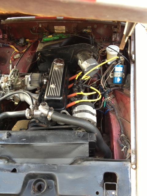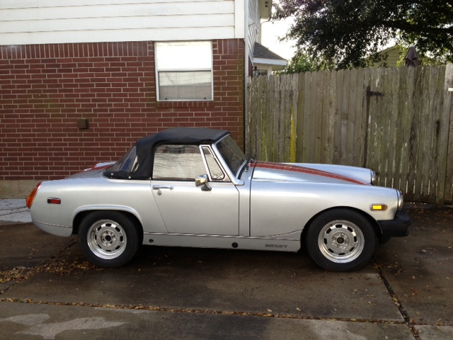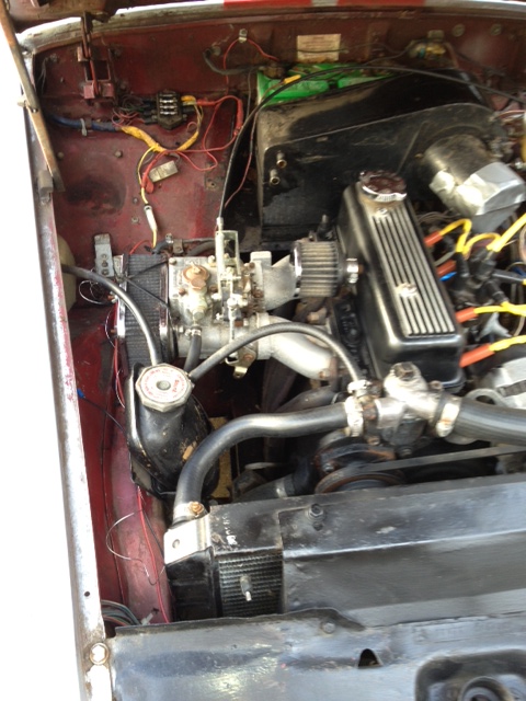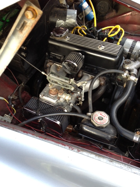 New paint, new radiator, rollbar, new clutch (new spare disc included), new brake drums, new brake cylinders with steel braided lines, new master cylinder, new clutch slave cylinder and line, new radiator, new engine rebuild (less than 300 miles), new alternator, side draft Weber 40 DCOE, custom valve cover, headers, custom exhaust and muffler, custom upholstery, electric fuel pump, custom crankcase breather, custom wire light covers, custom Austin Healey wheels, new lower and stiffer springs, heavy duty sway bar, electric radiator fan kit installed, new hoses, new convertible top.