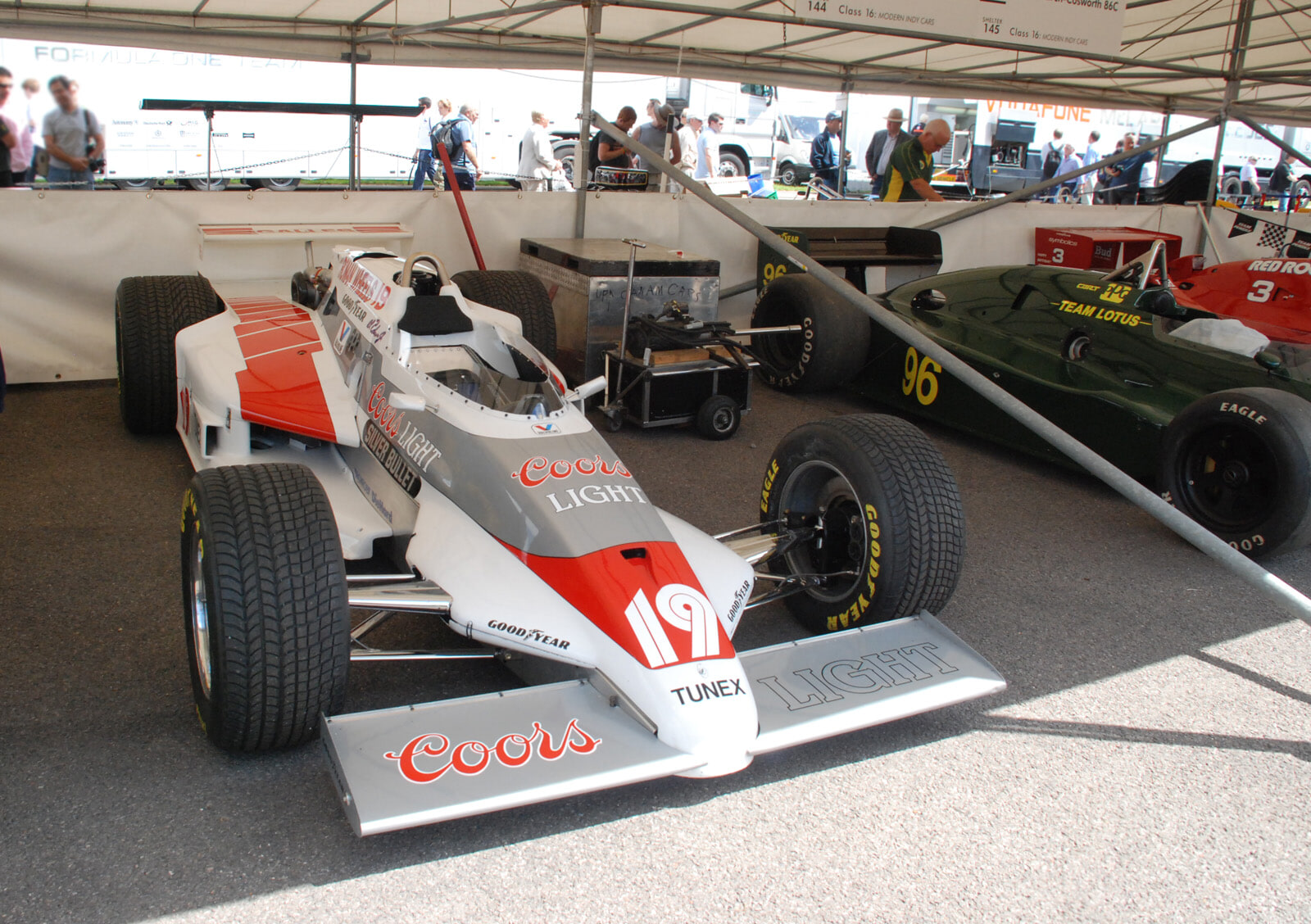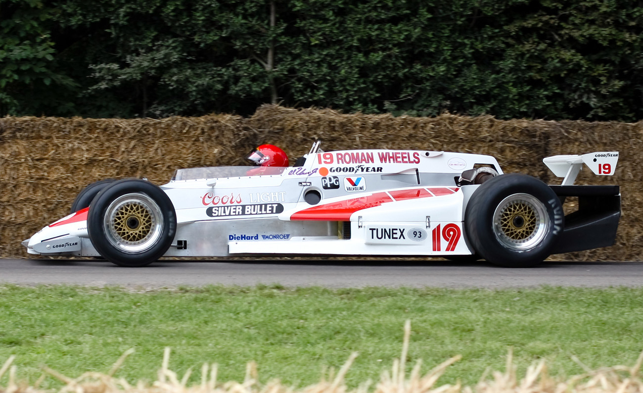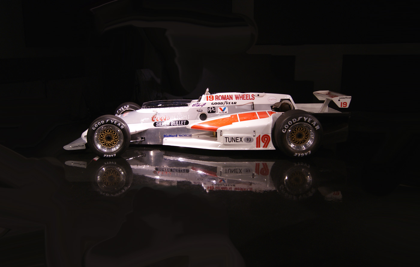 Chassis # 8114, CART # 232. Former Galles Racing for Al Unser Jr. Coors Light Silver Bullet / Roman Wheels livery. This car won the Indy Constructer Award for outstanding craftsmanship and innovation. Unser qualified at the 1983 Indy 500 in 5th position at a speed of 202.146. He finished 10th. This car is Little Al's rookie Indy car which he drove in the 1983 Indy 500 and throughout the 1983 Season. Trevor Harris was the team engineer. This was the first and only Indy car in 1983 to have all the rear suspension above the underwing.